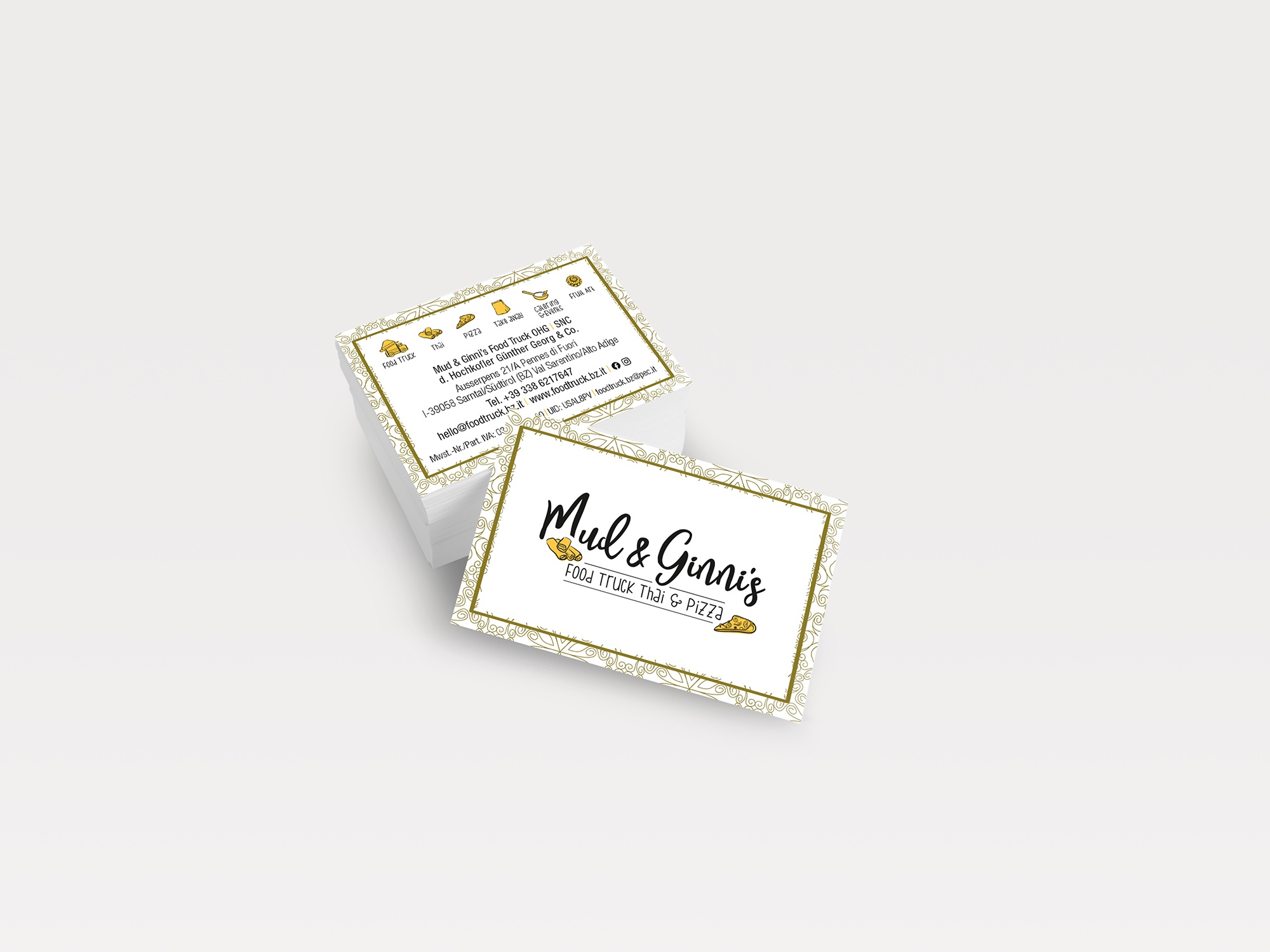 Logo | Visitenkarten | Gestaltung Food Truck | Gestaltung Pizza-Anhänger | Homepage | Stempel | T-Shirts | Preislisten | Website